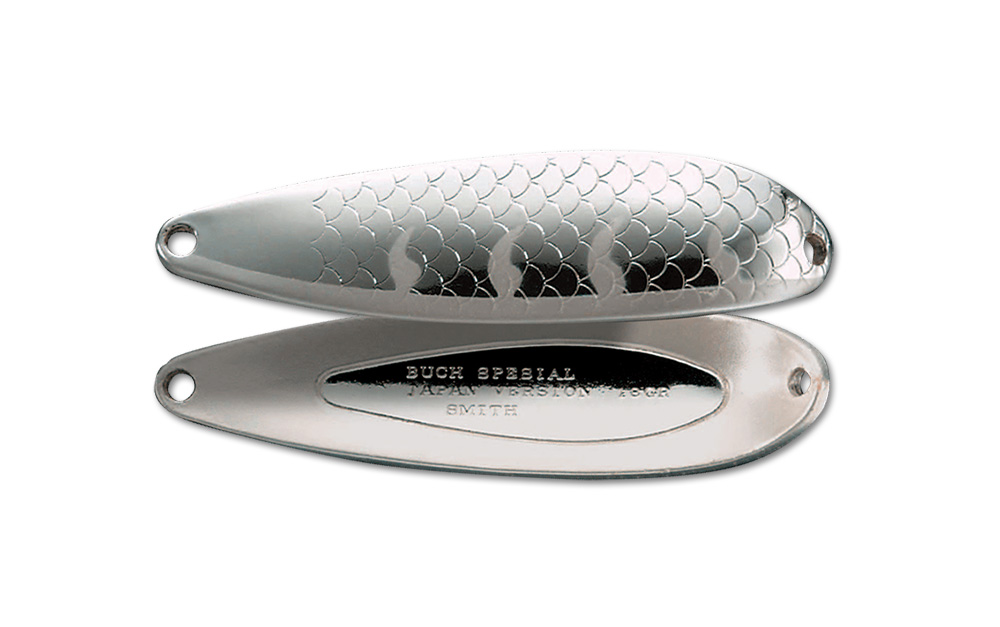 Среди любителей ловли лосося и семги очень популярна блесна Buch Japan  из ассортимента японской компании Smith. Она эффективна при ловле всех видов лососевых. Хорошо клюют на нее щуки и судаки, также можно поймать крупного окуня, берша, жереха. Успех блесны достигается благодаря тому, что хищник воспринимает ее иначе, чем большинство других колебалок. Резкая, интенсивная игра вынуждает рыбу атаковать раздражитель с целью защиты, а не охоты. Поэтому Buch Japan подходит для ловли сытых и пассивных особей. Поискать добычу можно на удалении от берега - у блесны хорошая дальность полета, что дает возможность забросить ее на любые дистанции. Геометрия и баланс тела помогают Buch Japan лучше играть и быстро заглубляться при ловле на течении.